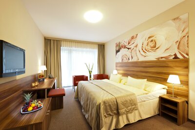 recepcia, reštaurácia, lobby bar, bazén Olympic, balneoprevádzka, detský kútik, reštaurácia, kozmetika, výťah, fitness. Hotel sa skladá z dvoch krídiel - trojhviezdičková časť je určená pre klientov zdravotných poisťovní a štvorhviezdičková časť pre samoplatcov.