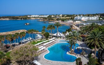 - rozľahlý hotelový komplex sa nachádza na juhozápade Cypru na okraji polostrova Akamas - chránená oblasť UNESCO