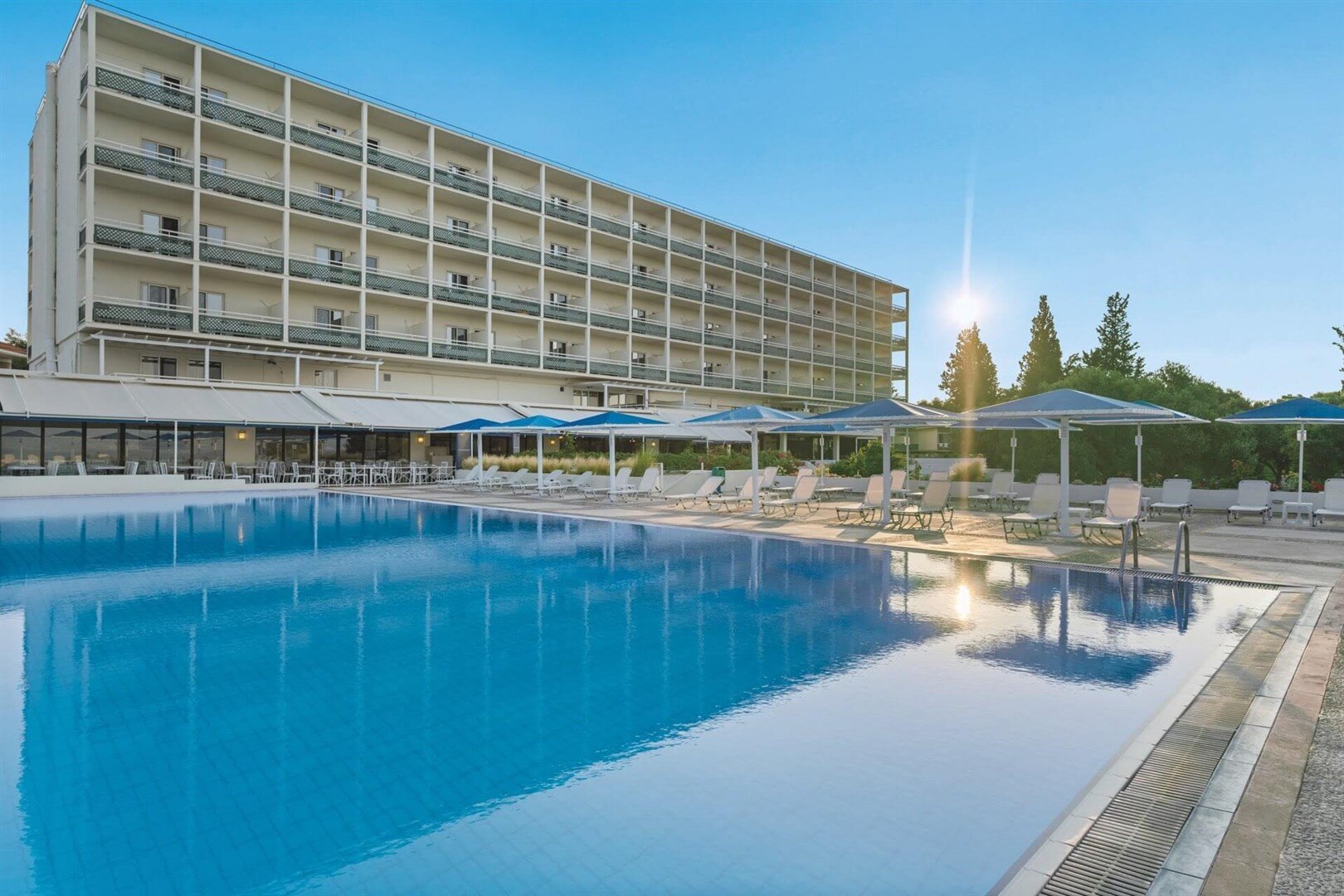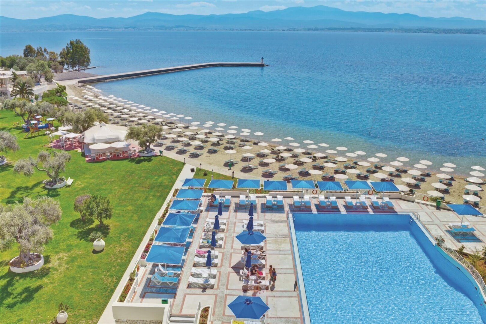 Hotel sa stal obľúbenou súčasťou našej ponuky. S polohou priamo na piesočnatej pláži, s pozvoľným vstupom do mora a možnosťou až štvorlôžkových izbieb je rezort vhodný aj pre rodiny. Rozľahlá záhrada poskytuje priestor na hru aj zábavu. Aby bol komfort úplný, all inclusive bar nájdete pri pláži, pri bazéne na terase, z ktorej sa ponúka pohľad na panorámu blízkej gréckej pevniny. Výborný pomer ceny a kvality uspokojí stredne náročných klientov.