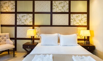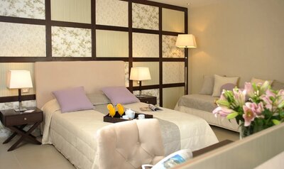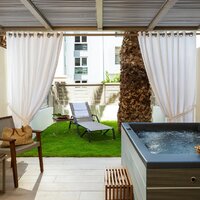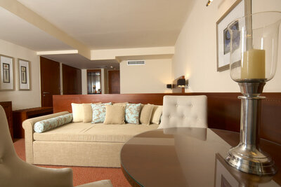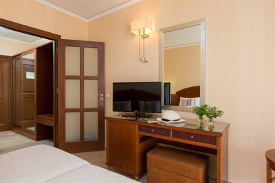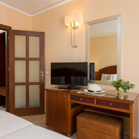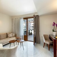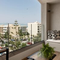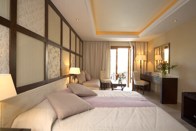 rôzne typy izieb: klimatizované dvojlôžkové izby s možnosťou jednej prístelky, s bočným výhľadom na more, s výhľadom na bazén, s prístupom do bazéna, s jacuzzi. Mezonety pre max. 3 dospelé osoby a 1 dieťa, mezonety s jacuzzi pre 2 osoby. Rodinné izby (2 miestnosti) pre maximálne 3 dospelé osoby a jedno dieťa, rodinná izba s jacuzzi pre max. 3 osoby. Suita s jacuzzi pre 2 osoby, suity s bočným výhľadom na more pre max. 3 osoby. Vybavenie izieb: balkón alebo terasa, telefón, kanvica, SAT TV, WI-FI (zdarma), trezor (za poplatok), kúpeľňa s WC.