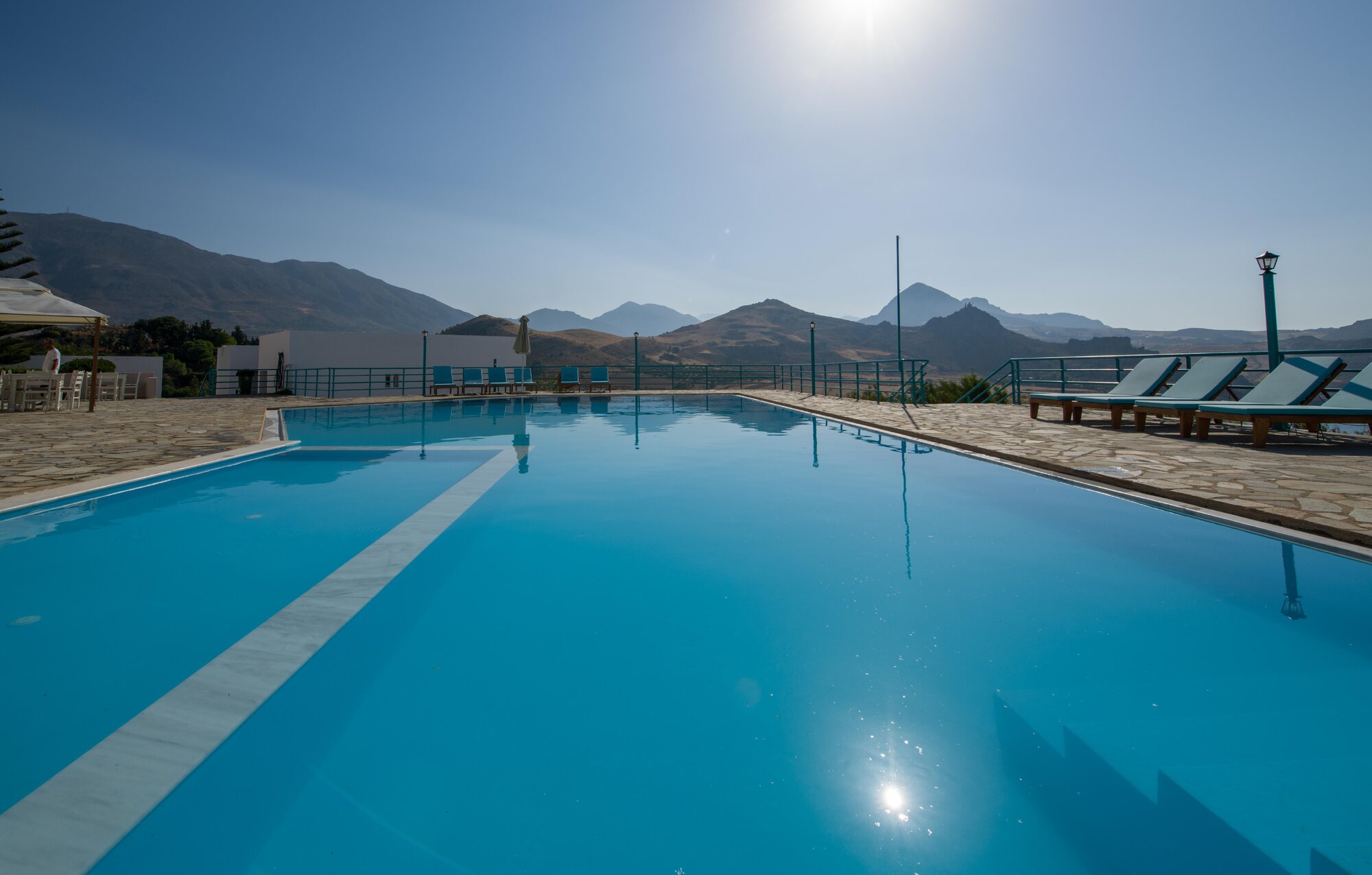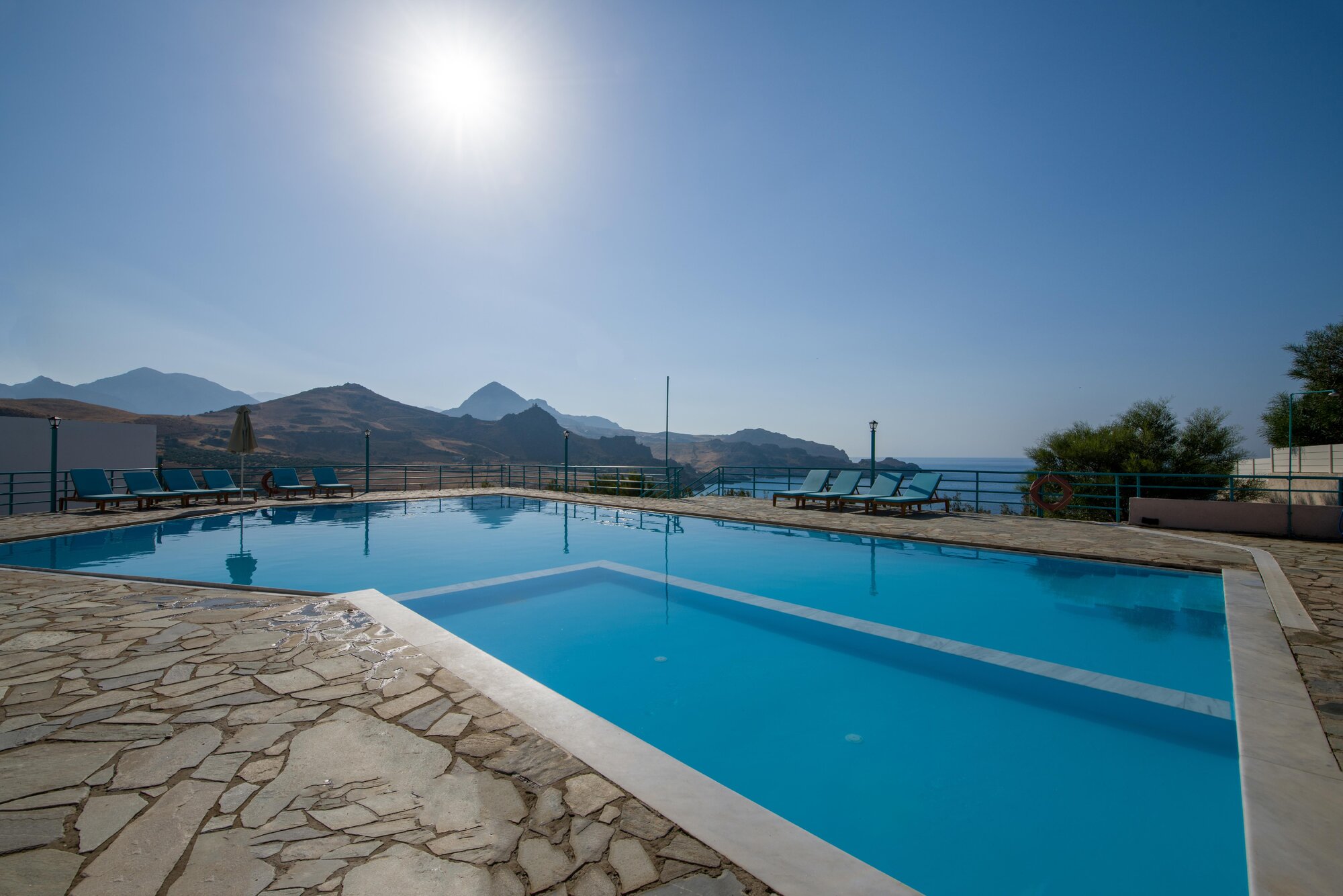Rodinný hotel situovaný na kopci s romantickým výhľadom na záliv na ostrove Kréta vhodný pre rodiny s deťmi, ako aj pre jednotlivcov.