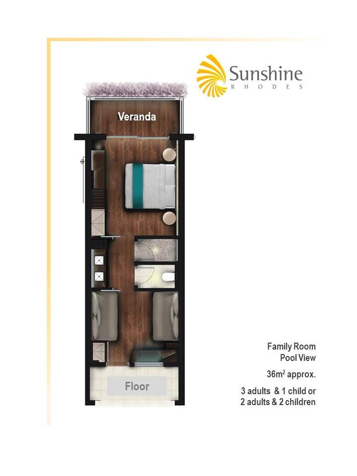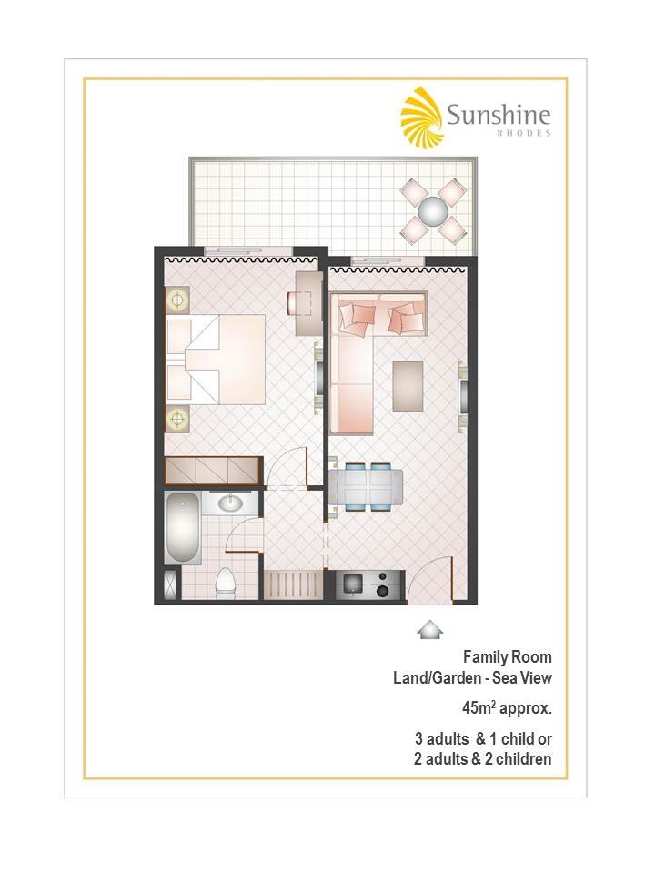 - rodinné izby s oddelenými miestnosťami (výhľad na more za poplatok)