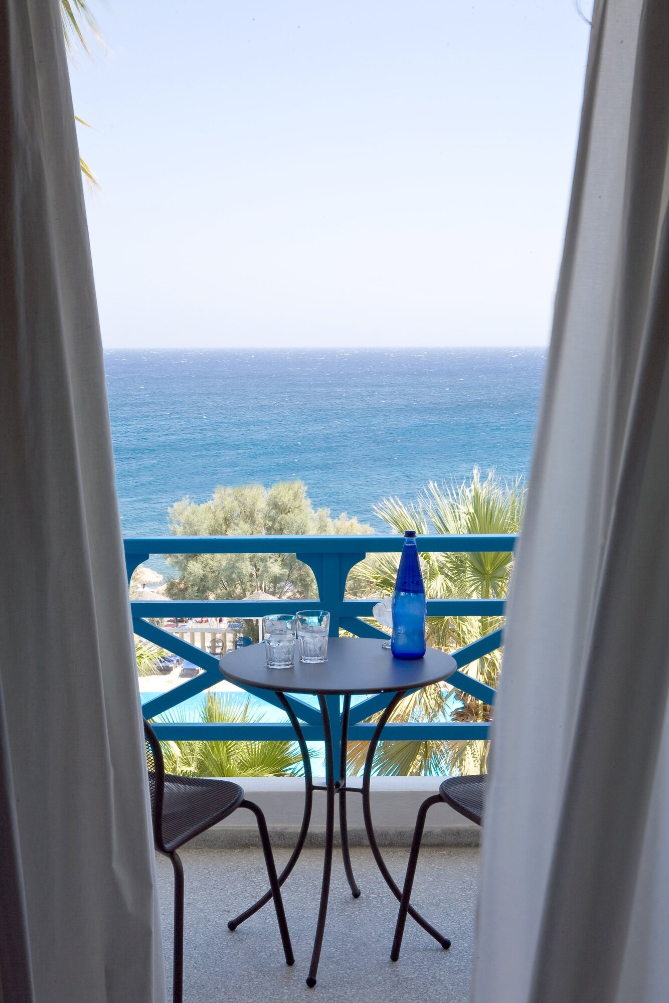 Komfortný hotel postavený v typickom kykladskom štýle priamo pri pláži Kamari beach vhodný aj pre rodiny s deťmi