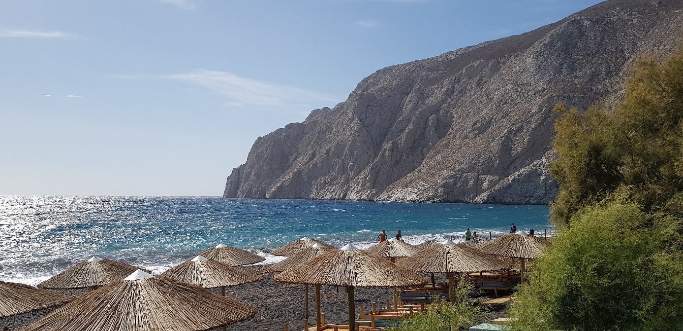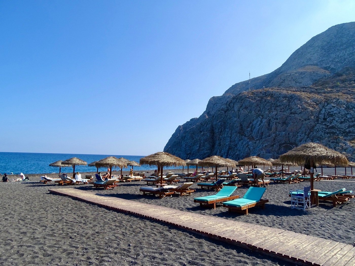 Kamari je elegantné pobrežné letovisko na Santorini s 5 km dlhou čiernou plážou, pokojom, no zároveň všetkými službami na dosah. Výborné miesto na dovolenku pre rodiny aj páry, ktorí túžia spojiť plážový relax s možnosťou výletov a večerného vyžitia. Toto pokojné prímorské letovisko na juhovýchodnom pobreží ostrova Santorini ponúka skvelú rovnováhu medzi oddychom a aktivitou. Vyznačuje sa dlhým úsekom pláže s čiernym sopečným pieskom, vysoko organizovanou infraštruktúrou pre plážovú dovolenku ( pláž je plne vybavená pre turistov – slnečníky, lehátka, sprchy, toalety). Zaujímavý čierny piesok a jemné kamienky vznikli eróziou sopečných hornín. Kamari má pekne upravenú promenádu pozdĺž pláže s kaviarňami, tavernami, obchodíkmi a barmi. Okrem kúpania sa môžete vydať na výlet k archeologickému areálu Ancient Thera na hore Mesa Vouno, vyskúšať rôzne vodné športy alebo len relaxovať v malebnom mestečku. Kamari sa nachádza približne 10 km od hlavného mesta Santorini (Fira) a krásneho mesta Oia nad sopečnou kalderou, zároveň  je blízko letiska, čím je výbornou základňou pre výlety k najzaujímavejším miestam tohto čarovného ostrova.