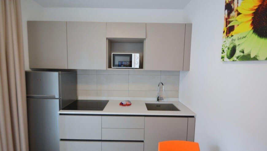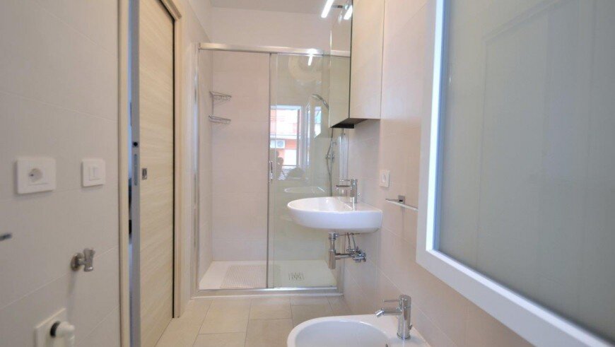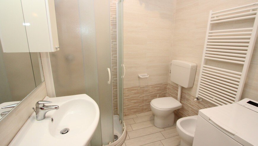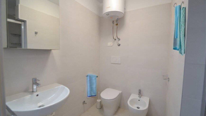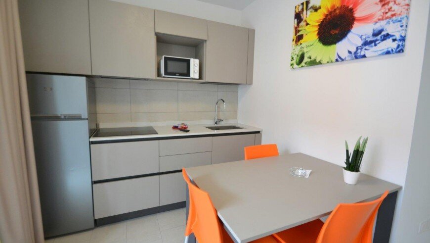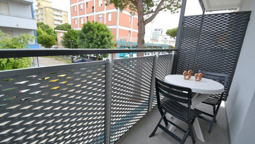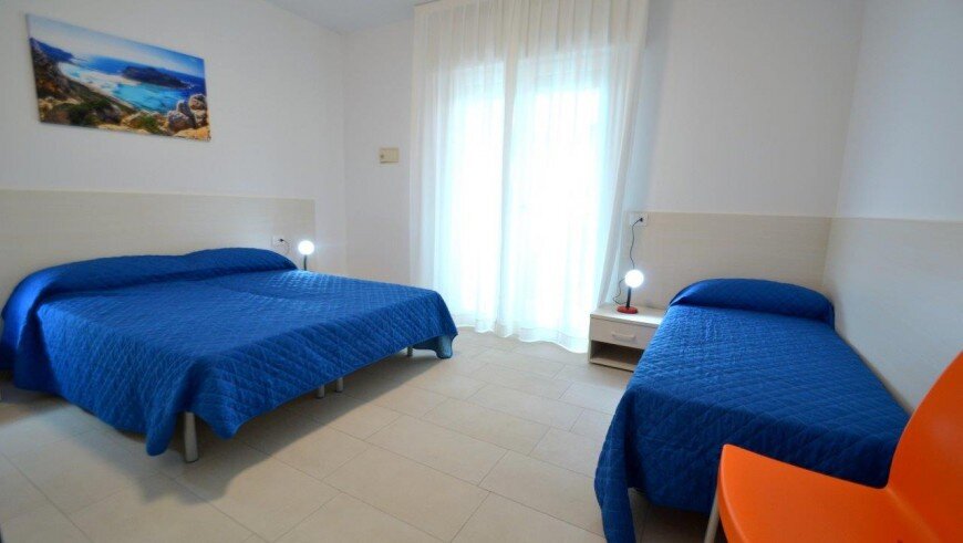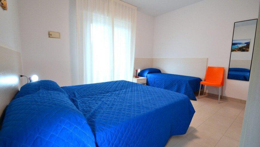 v dome bez výťahu sa nachádza niekoľko typov apartmánov. Všetky sú moderne zariadené, majú obývaciu miestnosť vybavenú kuchynským kútom a pohovkou, k dispozícii je trezor, chladnička, plynový sporák, mikrovlnná rúra, spoločná práčka, TV, klimatizácia a balkón. Apartmán pre max. 6 osôb - trilocal C - má navyše dve spálne - jednu s dvojlôžkom a samostatným lôžkom, druhú s dvomi samostatnými lôžkami. Apartmány pre max. 3 osoby - typy B - majú ešte jednu spálňu s dvojlôžkom a samostatným lôžkom - v obývacej miestnosti sa nenachádza pohovka. Apartmány pre max. 4 osoby - typy B1 - majú ešte jednu spálňu s dvojlôžkom a samostatným lôžkom. Apartmány pre max. 5 osôb - typy B 2- majú ešte jednu spálňu s dvojlôžkom a samostatným lôžkom a v obývacej časti pohovku pre dve osoby.