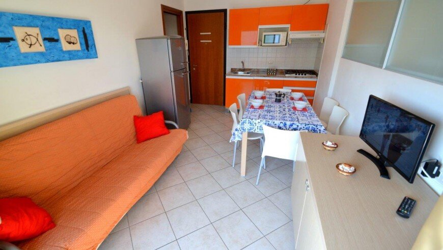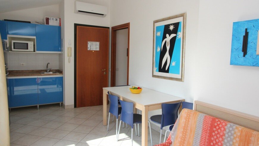 apartmánový dom s klimatizáciou v blízkosti pláže v centrálnej časti Bibione Spiaggia, v blízkosti hlavnej nákupnej pešej zóny. Apartmány vhodné pre 4-5 osôb.