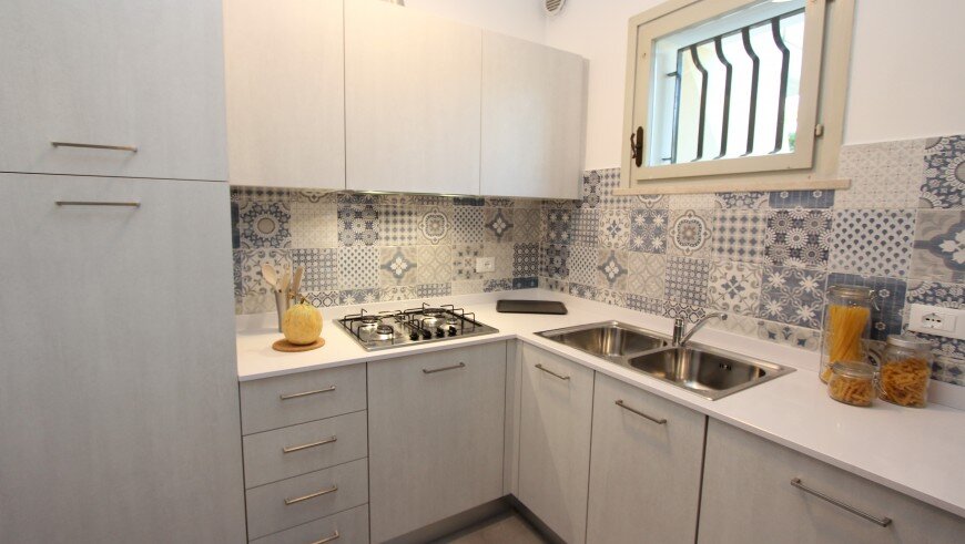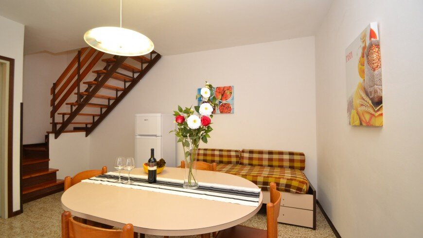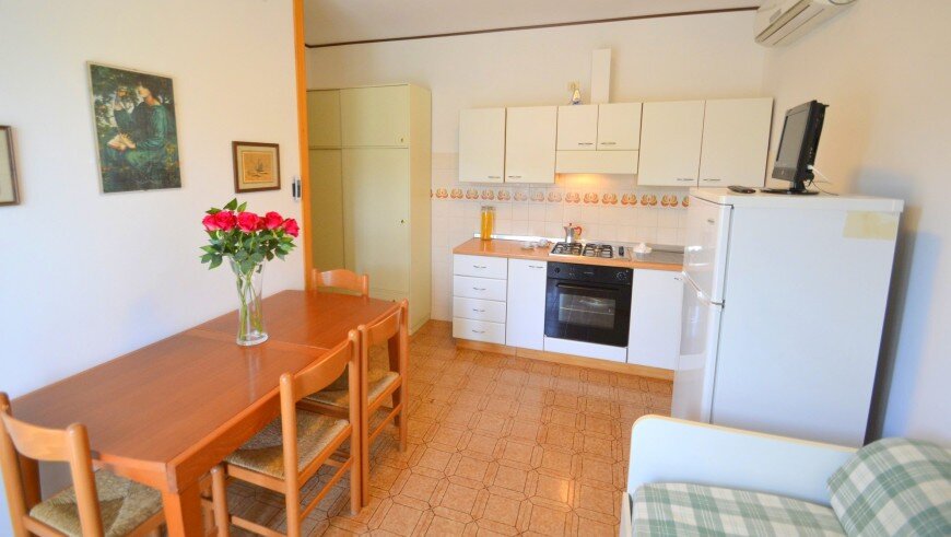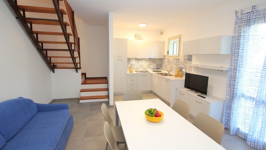 Villaggio pozostáva z niekoľkých dvojposchodových budov, v centrálnej časti sa nachádzaju tri bazény. Ponúka niekoľko typov apartmánov, všetky majú vlastné sociálne zariadenie, obývaciu miestnosť s príležitostným lôžkom, vybavenú kuchynskou linkou, chladničkou, TV a klimatizáciou a jednu alebo dve spálne. Typ B2 pre 4 osoby je na prvom poschodí a má jednu spálňu s dvojlôžkom a v obývacej časti vysúvacie dvojlôžko a balkón. Typ B3 je rovnaký, ale je na prízemí s terasou. Apartmány pre 6 osôb sú na prízemí - typ C5 - s terasou a po rekonštrukcii - kuchyňa je moderne vybavená práčkou, umývačkou riadu a mikrovlnnou rúrou, k dispozícii rozkladacie dvojlôžko a dve spálne - jedna s dvojlôžkom a jedna s 2 samostatnými lôžkami. V kúpeľni je sprchový box. Apartmán pre 6 osôb typ C3 je tiež po rekonštrukcii, ale na poschodí a s balkónom. Apartmán pre 6 osôb typ C4 nie je zrekonštruovaný, v obývacej časti je vysúvacie dvojlôžko, v jednej spálni je dvojlôžko a v druhej dve samostatné lôžka. V kúpeľni je sprchovací box. Zrekonštruované apartmány C3 a C5 majú úroveň ubytovania 4*.