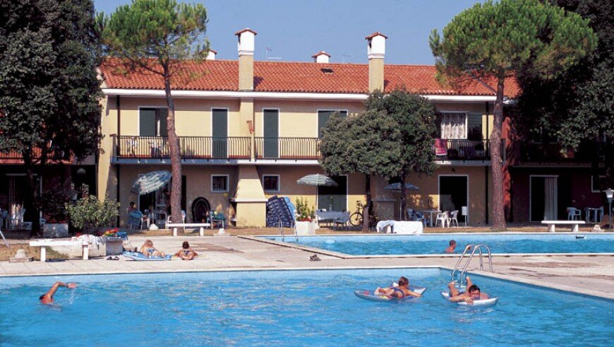 Villaggio ponorené v zeleni s bazénami pre deti aj dospelých, s klimatizovanými apartmánmi, niektoré po úplnej rekonštrukcii.