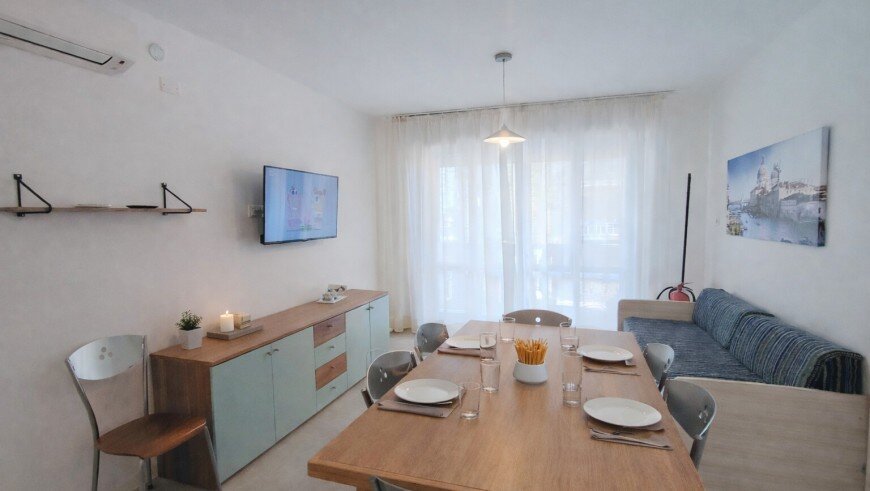 Obľúbený apartmánový dom s výťahom a priestrannými apartmánmi až pre 7 osôb a s výbornou polohou v blízkosti pláže. Renovovaný interiér na sezónu 2025. V cene aj klimatizácia a Wi-Fi.