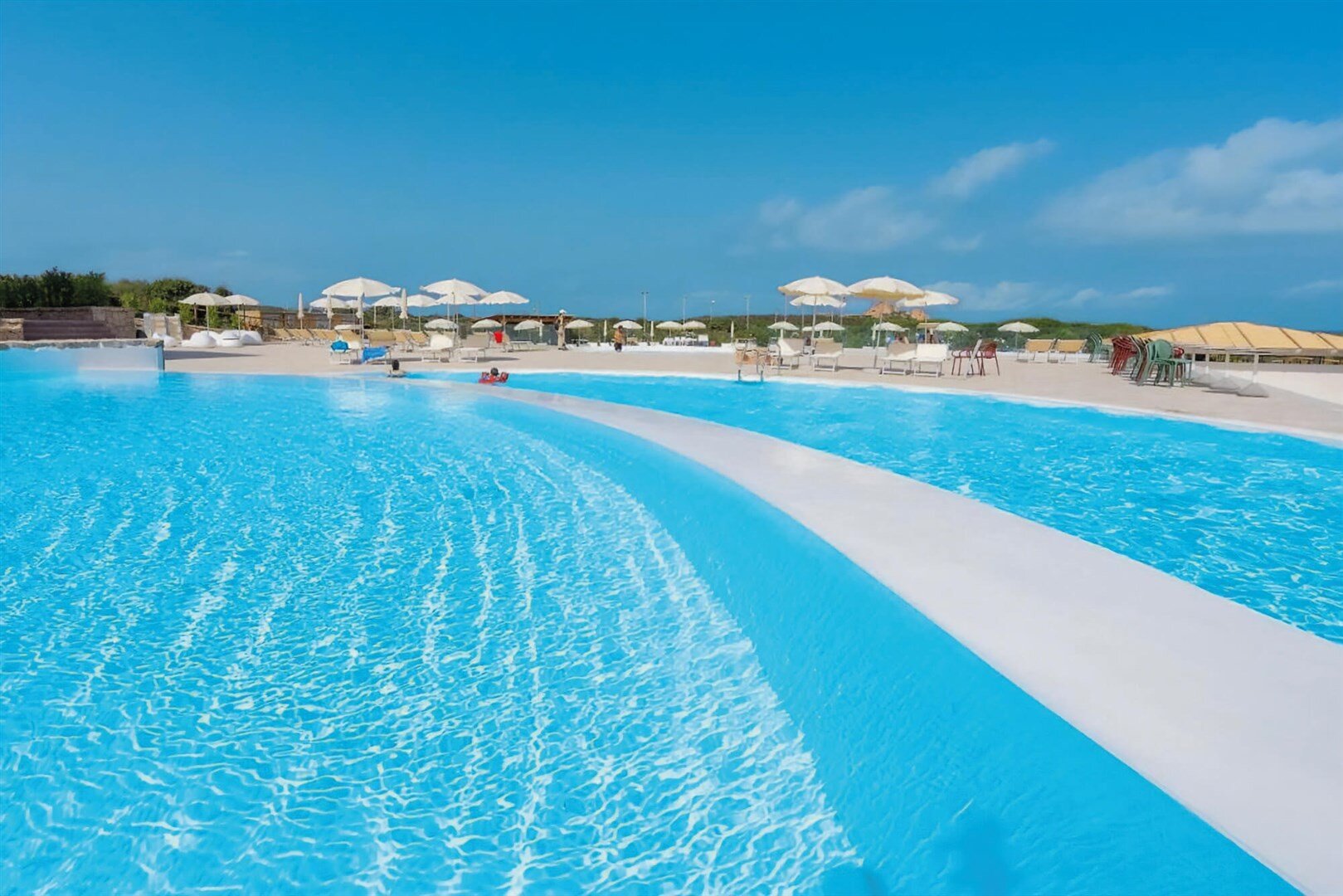 - slnečníky, ležadlá, resp. plážové kreslá pri bazéne a na pláži