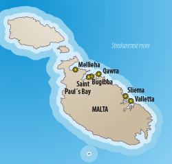 pobrežná promenáda Bugibba lemovaná lokálnymi obchodmi, reštauráciami, tavernami dostupná v pešej vzdialenosti. V blízkosti hotela cca 2,3 km sa nachádza Maltské národné akvárium. Letisko MLA vzdialené 19 km.