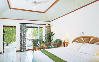 Plážové bungalovy: chatiek, každá so 4 bytovými jednotkami, Morská strana, kúpeľní: 1, s oknom, tečúcou teplou vodou, studená tečúca voda, sprchovací kút, WC, Počet WC: 1, fén, klimatizácia (individuálne regulovaná, zadarmo), fén, mini bar (za poplatok ), trezor (zdarma), televízia (satelitná TV, typické programy pre danú krajinu), terasa, výmena posteľnej bielizne, výmena uterákov (DZ/DA/DZP/DAP)
