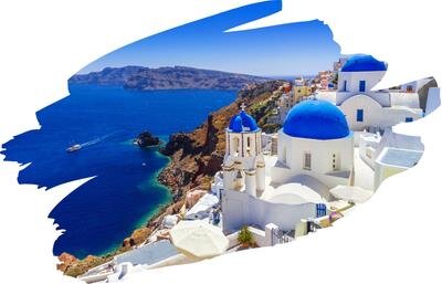 Grécka, známej bielymi domami, modrými kupolami kostolov a romantickou