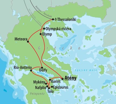 Najvýznamnejšie zastávky v Aténach, Mykénach, Delfách, v starovekej Olympii a Korinte. Plavba na malebné ostrovy Sarónskeho zálivu Hydra a Spetses. Egejské more a množstvo ďalšieho čaká na obdiv turistov cestujúcich do Grécka. Program