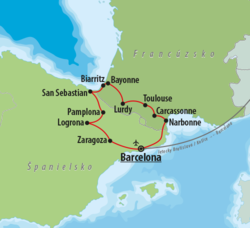 Po raňajkách transfer do kúpeľného secesného mesta San Sebastian. Mesto leží v zátoke v tvare mušle a pláž La Concha je jednou z najkrajších pláží v Európe. Monte Urgull, kopček s pevnosťou na vrchole, poskytuje nádherný výhľad na mesto a Biskajský záliv. Pod pahorkom sa nachádza Peine del Vient. V kláštore Museo de San Telmo je možné uvidieť obrazy baskického maliara Ignacia Zuolagy, ale aj maliara El Greca. Milovníkov podmorského sveta poteší rybársky prístav s akváriom. Presun do mesta Pamplona, ktoré má zaujímavé námestia Plaza del Castillo a Plaza Consistorial, katedrálu Santa Mária, pevnosť La Ciudadela a mestské hradby. Presun do hotela, ubytovanie.